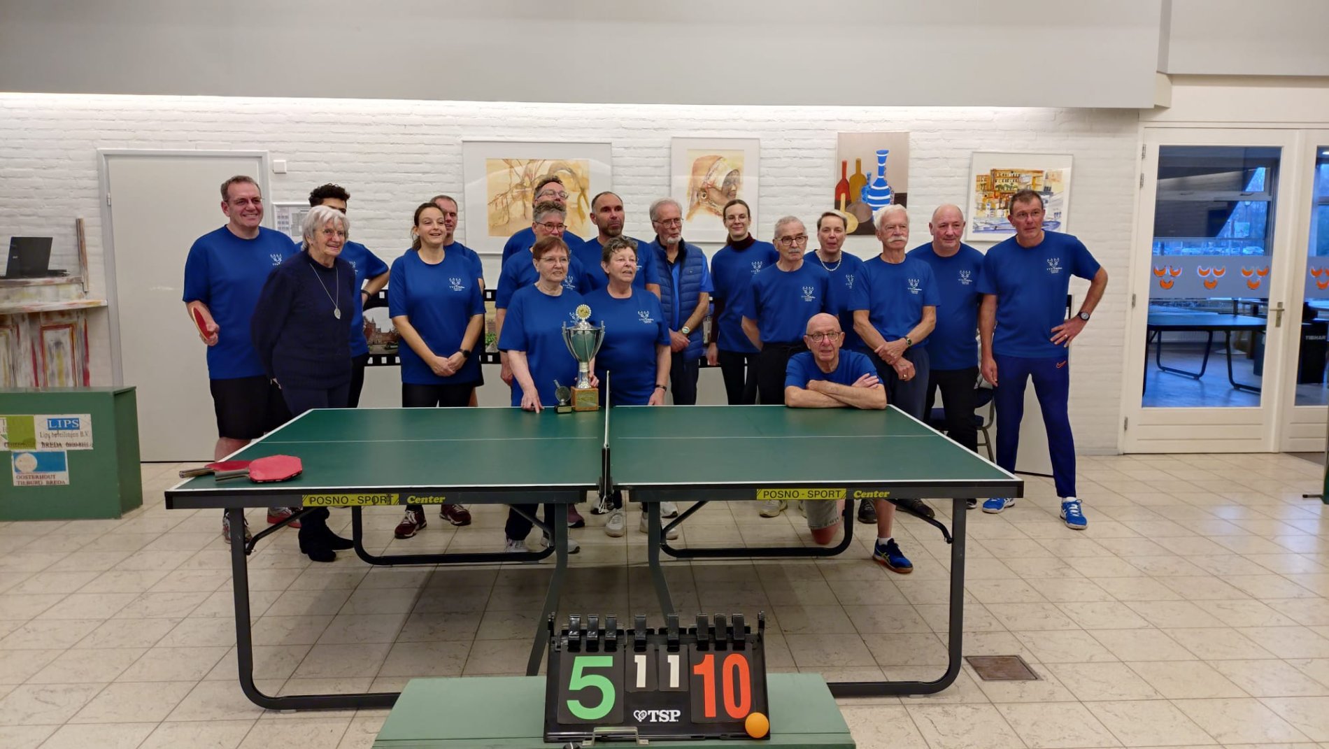 Als je op de foto klikt krijg je een mooie terugblik op een leuke sportieve avond waarin teams met en tegen elkaar, in verschillend speelniveau, zonder een winnaar of verliezer, met alleen maar dezelfde tafeltennis-, of zoals Jan het verwoordt: "pingpong-hobby" hebben gespeeld.